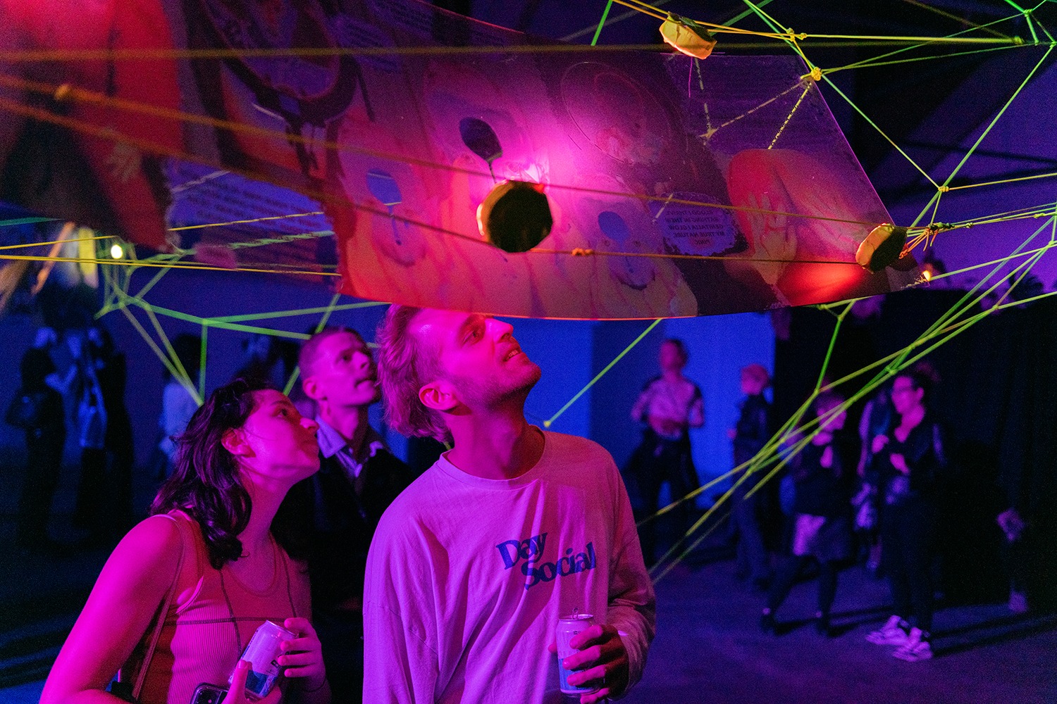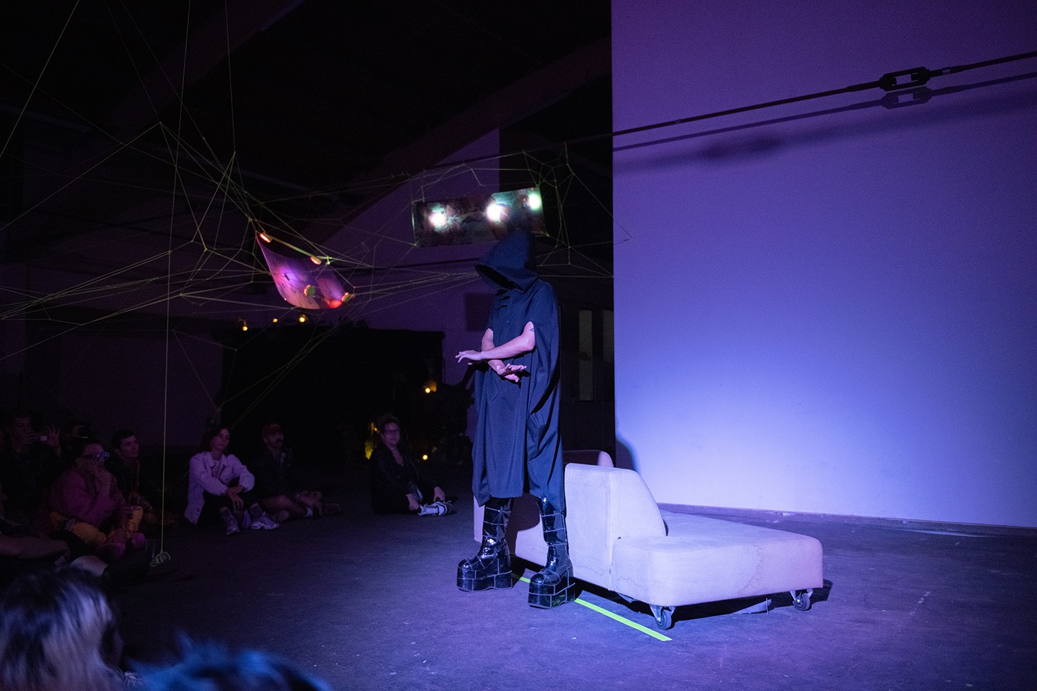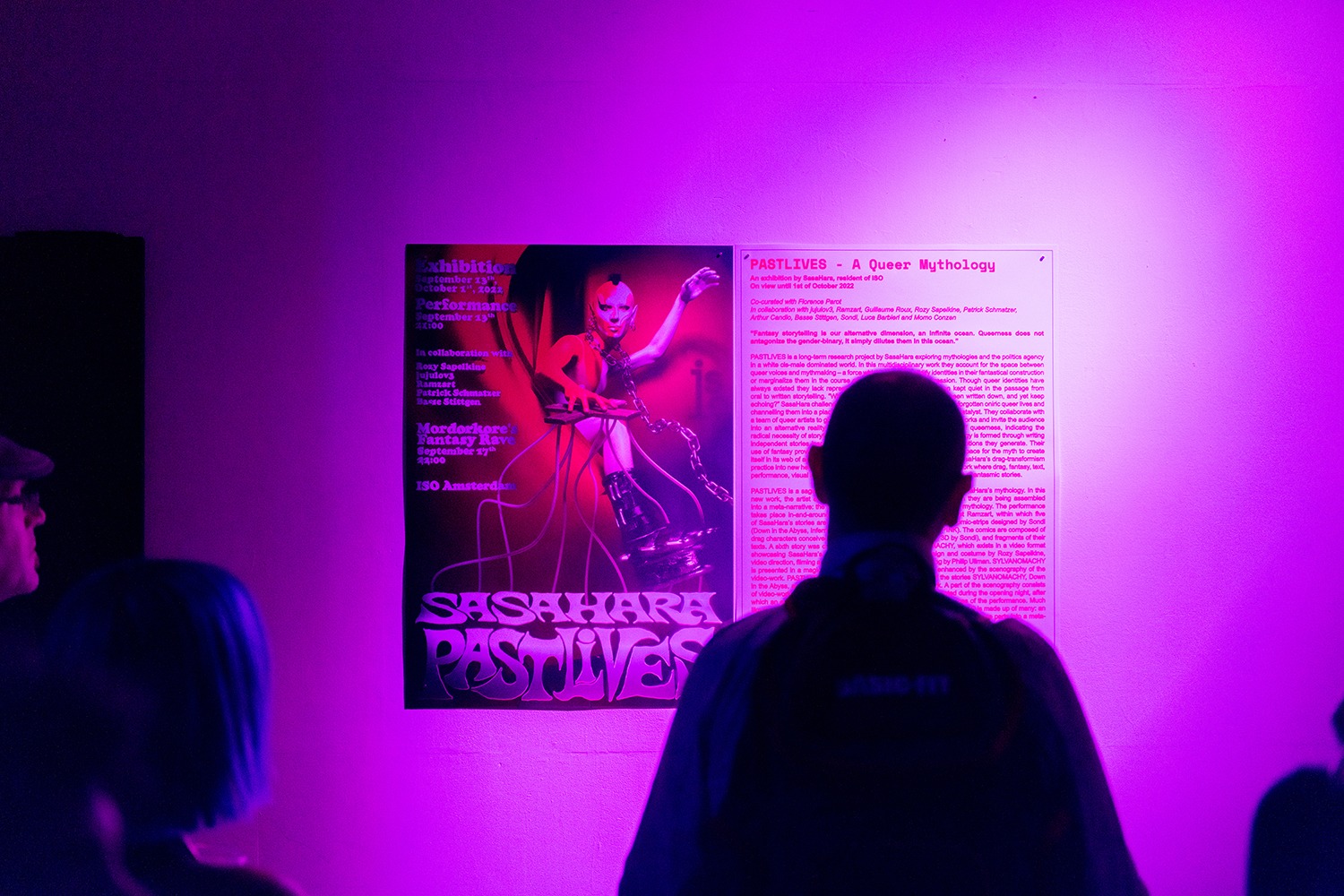 PASTLIVES was the final presentation of the first chapter of the SasaHara Past Lives. The exhibition took place in ISO Amsterdam as a part of the program of UNSEEN Amsterdam 2022, between the 13/09/2022 and the 01/01/2022. It gathered the six stories that constitute the first book of the SasaHara Past Lives saga, and has been the physical place allowing these stories to merge together through an installation acting as a set for the PASTLIVES performance. The exhibition also hosted a party co-organized by SasaHara and the Berlin-based medieval fantasy rave organizer Mordorkore, exploring an interactive worldbuilding format where the public of the party inhabits the installation and brings it to life through their dance moves and fooling around.