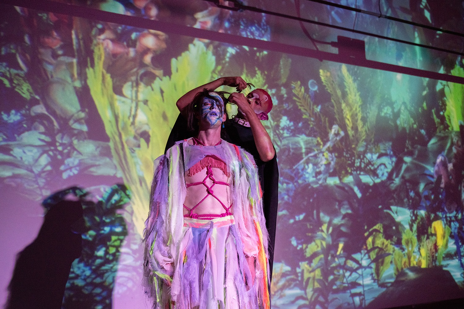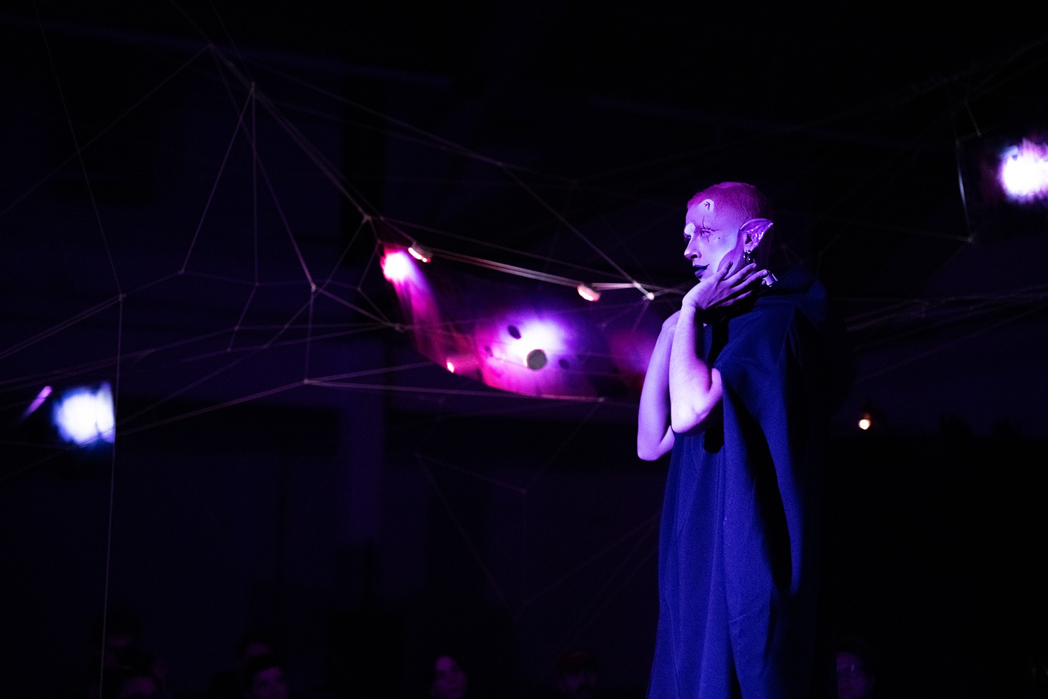 “PASTLIVES is a long-term research project by SasaHara exploring mythologies and the politics agency in a white cis-male dominated world. In this multidisciplinary work they account for the space between queer voices and mythmaking – a force which can either solidify identities in their fantastical construction or marginalize them in the course of barring such ways of expression. Though queer identities have always existed they lack representation, as their stories have been kept quiet in the passage from oral to written storytelling. “What happens to the myths that haven’t been written down, and yet keep echoing?” SasaHara challenges this heteronormative caging by invoking forgotten oniric queer lives and channelling them into a place to exist for eternity, using their voice as the catalyst. They collaborate with a team of queer artists to give physicality to their mythological storytelling works and invite the audience into an alternative reality that is knitted through their own experience of queerness, indicating the radical necessity of storytelling at its core. The architecture of their mythology is formed through writing independent stories inspired by lived experiences and the unpacked emotions they generate. Their use of fantasy provides an extremely metaphorical style leaving organic space for the myth to create itself in its web of associations. In all, PASTLIVES is an effort that takes SasaHara’s drag-transformism practice into new heights by presenting an immersive multimedia theatre-work where drag, fantasy, text, performance, visual and audio work all converge in a cosmology of queerophantasmic stories.”