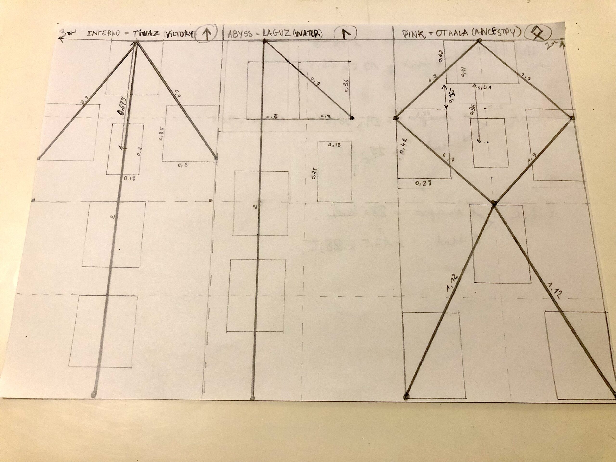Three stories of the SasaHara Past Lives series were presented: ‘Down in the Abyss’, ‘Inferno’, and ‘PINK’. Each story was presented with images and text prints, presented into a runic layout. I was inspired by old Germanic / Scandinavian runes, which were a way of manifesting the invisible/magic into the tangible reality through a carving. Each story was presented through a rune which represents the core concept of the text.